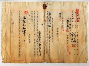 一 台湾総督府民政部通信局勤務台湾総督府雇矢納(旧姓宇佐美)つま(本籍地三重県津市大字津南堀端)ヨリ小学校専科正教員無試験検定出願ニ付キ免許状授与ノ件