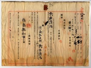 九 徳島県小学校本科正教員免許状ヲ有スル阿緱庁車城公学校勤務台湾公学校雇武市清治(本籍地徳島県勝浦郡勝占村大字西須賀村字中須・徳島県師範学校卒)ヨリ尋常小学校本科正教員無試験検定出願ニ付キ免許状授与ノ件