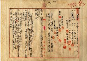 八 消費税ノ担保ヲ目的トシテ設定スル製糖工場財団ニ組入ヲ認容スヘキ物件及条件ノ決定ニ従ヒ其ノ指定事項ニ付キ当該工場ノ所有者ヘ通知並ニ工場財団ニ組入ルヘキ物件ノ時価ヲ調査シ意見トシテ添附セラルル事及ヒ本年期ノ消費税ニ対シ提供セントスル者ニ関シテハ其ノ会社及工場名等申報方ニ付キ台中・嘉義・台南・阿緱各庁長ヘ通達並ニ各庁ヨリ回答、製糖工場財団ヲ砂糖消費税ノ担保ニ徴スル場合ノ処理方ニ付キ台北・新竹・南投・台中・嘉義・台南・阿緱各庁長ヘ通達ノ件