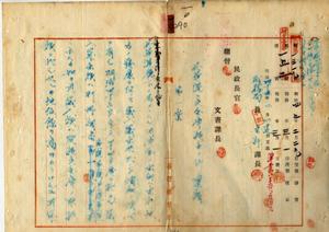 一〇 花蓮港庁ニ支金庫設置ニ付キ内閣総理大臣及ヒ大蔵大臣ヘ稟請並ニ明治四五年五月三一日大蔵省告示第七九号ヲ以テ設置仔告示ノ旨拓殖局総裁元田肇ヨリ通牒ノ件