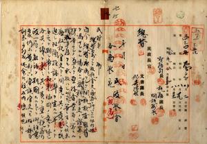 七 台北スミス・ベーカー商会支配人エー・シー・ブライヤーヨリ願ヒ出デタル同社ガ本島カラ昨年汽船セネカ号ニヨリ蘓士運河経由ニテ紐育市スミス・ベーカー商会ヘ積出シタル台湾烏龍茶中アメリカ合衆国政府製茶検査官ニヨリ不合格トナリタルモノ有リタル為メ本島ヘ積返サルヽ台湾烏龍茶ノ税法上ノ取扱ニ関シ、製茶税則第三条ニ依リ納税シタル製茶ヲ海外ニ輸出シタルモ或ル事故ノ為メ外国市場ニ其侭販売スルコト能ハス止ムナク之ヲ本島ニ積戻シ再製ニ付キシタル後更ニ之ヲ海外ニ輸出セントスルモノトノ案件(但シ外国駐在本邦領事ノ積戻シニ関スル証