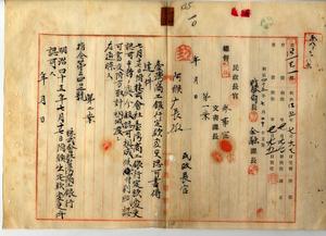 一〇 株式会社台湾商工銀行取締役頭取木村匡(阿緱庁港西中里阿緱街)ヨリ出願ノ同行ト株式会社台湾貯蓄銀行トノ合併に伴フ定款変更ニ係ル出願ニ対シ台湾総督府民政長官ヨリ阿緱庁長ヘ株式会社台湾商工銀行定款変更認可ニ付キ阿緱庁長ヘ通達及ヒ認可書ヲ同台湾商工銀行ヘ伝達(指令第三四〇二号)並ニ台湾商工銀行合併認可申請書ヲ台湾総督ヨリ大蔵大臣ヘ申請書進達並ニ同台湾商工銀行定款変更届ヲ大蔵大臣ヘ進達ノ件