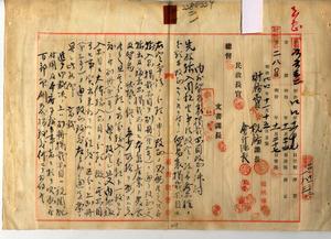 二一 台湾貿易表掲載品目並ニ原簿記帳及ヒ製表取扱方改正ニ付キ税関長ヘ通達ノ件明治四四年一一月民財第六六三二号通達ノ台湾貿易表掲載品目中訂正方税関長ヘ通達ノ件