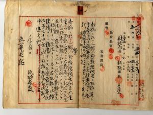 一 明治四四年四月二六日附ノ打狗ニ於ケル輸入製糖機械類取扱方ニ関スル台湾総督府税関長宛通牒ヲ変更シ従前ノ陸揚特許認可ノ儀台湾総督府税関長ヘ通達ノ件