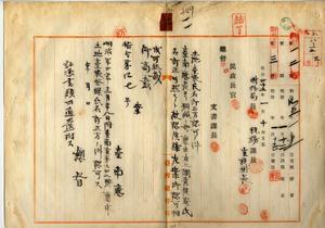 一一 台南庁永康上中里蜈忸潭庄李臭炳ヨリノ土地台帳登録氏名訂正方出願ニ付キ台南庁長松本茂俊ヨリ認可方稟申ニ関シ認可ノ件(指令第四七号)