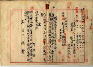一〇 阿緱庁長佐藤謙太郎ヨリ稟申ノ阿緱庁港西中里頭前渓庄ノ蘇金城ノ田ノ開墾地業主権認定方認可ノ件(指令第一三〇一号)