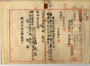 一七 嘉義庁長津田毅一ヨリ稟申ノ嘉義庁下ノ大怒榔東頂堡北港街ノ業主ヲ蔡択ヨリ蔡樺ヘ、嘉義西堡嘉義街土名内教場ノ業主ヲ鐘落ヨリ鍾落ヘ土地台帳登録氏名訂正方認可ノ件(指令第一八六六号)