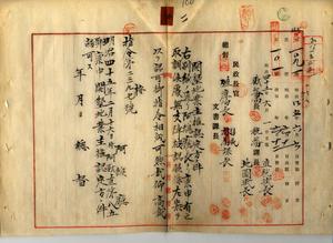 二 阿緱庁長佐藤謙太郎ヨリ稟申ノ盧開春・典主欧老川・典主欧乞ヘ阿緱庁港西中里隘椙庄ノ畑、藉審薯・藉知高・藉缺ヘ同里同庄ノ畑、李麟祥・李鴻祥・李福祥・李阿文ヘ港西中里老課庄ノ田、潘春貴・潘仕・潘劉氏阿桂ヘ同里同庄ノ畑、李丁那・李阿福ヘ同里同庄ノ畑・田、李成財・李阿二・李阿三・李阿五ヘ同里同庄ノ田、福徳会管理李徳双ヘ同里同庄ノ田、蕭文響ヘ同里崇蘭庄ノ畑、蕭来伝・蕭来冨・蕭来発・蕭知那ヘ咸昌里四重渓庄ノ田、陳福眼ヘ港西中里頭前渓庄ノ田、国庫ヘ同里崇蘭庄ノ田ト畑・同里頭前渓庄ノ畑ト建物敷地ト田・同里海豊庄ノ田ト畑
