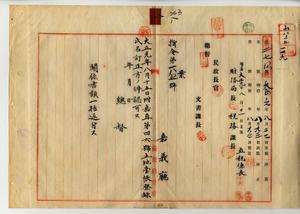 八 嘉義庁長津田毅一ヨリ稟申ノ嘉義庁下茄苳北堡海豊鮎庄ノ業主黄英ヲ黄朝英ヘ土地台帳登録氏名訂正方認可ノ件(指令第一八五号)