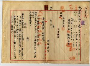 七 土地台帳氏名訂正心得(明治四四年四月民財第一八一一号通達)中改正ノ件各庁長(台東・花蓮港・澎湖庁ヲ除ク)ヘ通達及ヒ覆審法院長ヘ通牒ノ件