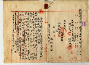 八 阿緱登記所ニ於テ私有道路成土地異動通知書不受理ノ旨阿緱庁長佐藤謙太郎ヨリ照会ニ付キ台湾総督府覆審法院長石井常英ヨリ回答ノ件