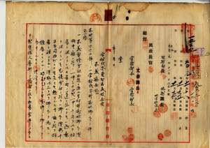二 嘉義庁長津田毅一ヨリ稟議ノ嘉義電灯株式会社取締役社長伊東義路ヨリ払下ノ出願ノアリタル工場敷地トシテ嘉義庁嘉義西堡嘉義街土名西門外ノ学租地ノ畑ト池沼ノ土地ノ件ハ不穏当ナルヲ以テ認可相成ラスニ依リ改メテ貸下ノ出願ニ変更シタルヲ以テ随意契約ニ依ル学租財団所属地貸附地トシテ認可シタル旨嘉義庁長ヘ通達並ニ同庁長ヨリ学租地貸付契約済ニ付キ学租財団管理者民政長官ヘ報告ノ件