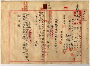 一〇 南投庁長石橋亨ヨリ申請ノ南投地方税金取扱所ニ台湾地方税郵便振替貯金特別取扱方認可ノ件(指令第四七号)