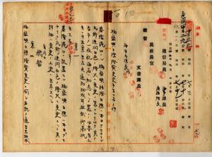 基隆港口ニ設置セル桶盤嶼立標「アセチリン」瓦斯ニ變更(告示第百五號)、基隆港口ノ桶盤嶼立標ハ燈質及光達距離變更(告示第十三號)