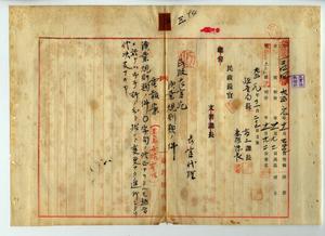 三 在京民政長官ト民政長官代理高田元治郎ノ間ニ於テ台湾漁業規則類決定ニ関シ照復(至急無線電信)ノ件