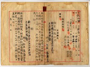 一 松本徒爾・芥川善治・角居謙太郎・本多清・神谷甚造・黄錬石・鍾勝明ヘ新竹庁管内ノ石炭鉱採掘願許可ノ件鉱区税納税ニモ拘ラズ通知書未達ニ付キ鉱業許可書送付ノ件
