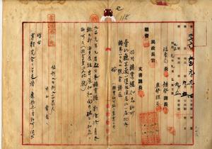 七 鉱業人井上幸吉ノ共同鉱業人加名願ニ依リ劉隆修・青木鍬三郎・海老原雄吉・帳加和・向井佐三ヲ台北庁管内ノ金鉱区共同鉱業人トシテ加名許可ノ件(指令第二九四号)