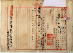 九 山本義信ト山本精一ヨリ炭層調査ノ結果鉱区訂正ノ必要ヲ認メ台北庁管内ノ石炭鉱区減区ニ係ル鉱区変更願許可ノ件(指令第三〇六六号)