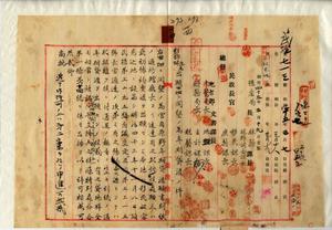 一四 彭錦球ト鄭瀉澄ヨリ出願ノ開墾ノ為メ新竹庁竹北一堡南河庄ノ官有原野年期貸渡願許可ノ件(指令第一一〇二号)