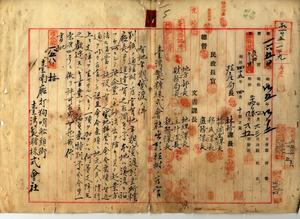 一 台湾製糖株式会社専務取締役山本悌二郎ヨリ会社経営ノ開墾地並ニ所有地ノ水害防止ヲ目的トスル造林ノ為メ阿緱庁港東上里ノ佳佐庄・崙仔頂庄・様仔脚庄ト港東中里ノ餉潭庄・糞箕湖庄・打鉄庄ノ官有原野年期貸渡願許可ノ件(指令第一八五八号)