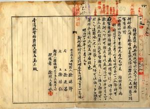 一三 被貸付人徐泰新死亡ニ付キ親権者徐陳氏奔妹、相続人ノ徐謙郎・徐建昌・徐禄仁ヨリ新竹庁北埔支庁管内蕃地大隘社字五け八及罵椙坪頭ノ樟樹造林地ノ無償貸付相続届提出ノ件