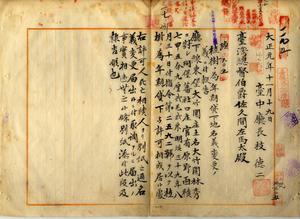 一七 被貸下人林秀死亡ニ付キ相続人林石獅ヨリ植樹ノ為メ台中庁線東堡蕃社口庄ノ官有原野年期貸下地ノ名義変更願許可ノ旨台中庁長枝徳二ヨリ報告ノ件