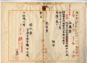 九 臨時台湾総督府工事部長内田嘉吉ノ内申ニ依リ台湾総督府作業所書記蒲田正威ヲ臨時台湾総督府工事部事務官ニ任ス
