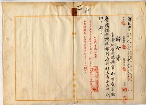 一一 台湾総督府民政部通信局長心得角源泉ノ内申ニ依リ台湾総督府港務官山田寅之助ニ台湾総督府港務所長井村大吉不在中ノ代理ヲ命ス