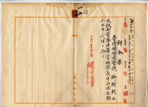 一五 台湾総督府民政部警察本署長亀山理平太ノ内申ニ依リ台湾総督府警察官及司獄官練習所教官兼台湾総督府警視御厨規三ニ民政部警察本署警務課長中山佐之助不在中ノ代理ヲ命ス