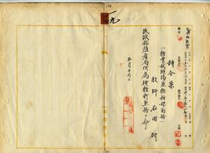 一九 台湾総督府民政部殖産局長高田元治郎ノ具申ニ依リ台湾総督府民政部殖産局糖業試験場兼台湾総督府民政部殖産局糖務課勤務台湾総督府技師石田研ニ民政部殖産局附属検糖所兼務ヲ命ス