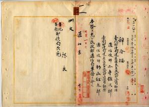 一一 台湾総督府民政部通信局長心得角源泉ノ内申ニ依リ台北郵便局建築課長兼民政部通信局勤務台湾総督府通信技師小寺鉎次郎及ヒ台南郵便局建築課長兼民政部通信局勤務台湾総督府通信技師杉山鈺太郎ノ本務ヲ免シ民政部通信局専務ヲ命ス
