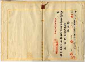 四 台湾総督府民政部蕃務本署長大津麟平ノ内申ニ依リ台湾総督府民政部蕃務本署理蕃課長心得台湾総督府警視高塚彊ニ蕃務本署長大津麟平不在中ノ代理ヲ命ス