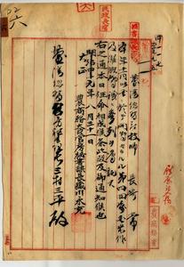 六 台湾総督府技師長崎常ヘ「イタリア」ニ於テ開会サレル第四回万国米作及灌漑会議ニ参列方ヲ嘱託シタル旨農商務大臣官房秘書課長蔵川永充ヨリ通知ノ件