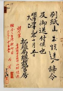 一二 台湾総督府民政部殖産局長高田元治郎ノ内申ニ依リ糖業調査ノ為メ米国・布哇・玖付及米国ヘ出張中ノ台湾総督府技師山村悦造ニ独逸国ニ於ケル甜菜糖ニ関スル調査特ニ同国ニ於ケル糖蜜分離製糖工業及其残滓ヲ以テアンモニヤ性肥料製造ニ関スル調査ノ為メ更ニ独逸国出張ヲ命ス