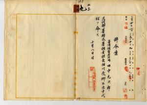 二三 台湾総督府民政部蕃務本署長大津麟平ノ内申ニ依リ台湾総督府技師田中元次郎ニ民政部蕃務本署調査課長相川茂郷不在中代理ヲ命ス