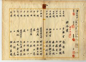八 台湾総督府通信手試験委員長角源泉ノ内申ニ依リ台湾総督府事務官ノ角源泉・伊藤金弥・斎藤愛二・藤井恭敬、台湾総督府翻訳官有泉朝次郎、台湾総督府海事官保木利吉、台湾総督府通信事務官補野村勘四郎、台湾総督府通信属記本寅之助、台湾総督府属田辺三亮、台湾総督府通信属ノ山本一・小池謹一、台湾総督府属石井慶松、台湾総督府通信技手大久保敬長、台湾総督府嘱託ノ細見倉之助・永松完・相原直哉ニ大正元年施行ノ台湾総督府通信手試験ノ際ノ勤労ニ対シ賞与ヲ給ス