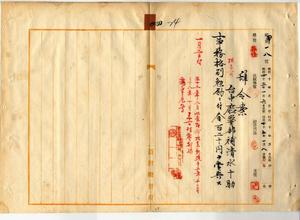 四 台湾総督府台中庁長枝徳二ノ内申ニ依リ病気危篤ノ北斗支庁勤務台中庁警部補清水十助ニ事務格別勉励ニ付キ一時金ヲ賞与ス