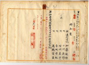 六 台湾総督府阿里山作業所事務取扱新元鹿之助ノ内申ニ依リ会計経理事務ヲ取扱ハシム為メ鉄道部書記人ノ加藤延好・小川義郎・宮崎忠平・吉岡芳松・高橋富吉ニ台湾総督府阿里山作業所書記兼任ヲ命ス