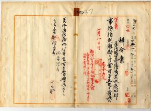 九 台南郵便局長曽祢吉弥ノ内申ニ依リ病気危篤ノ台南郵便局勤務台湾総督府通信属荒木康四郎ニ事務格別勉励ニ付キ一時金ヲ賞与ス