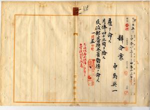 一一 台湾総督府民政部蕃務本署長代理警視高塚彊ノ内申ニ依リ台湾総督府文官普通試験合格者ニシテ元台湾総督府通信属中島与一ニ雇ヲ命シ民政部蕃務本署勤務ヲ命ス