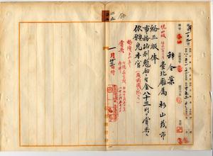 二五 台北庁財務課勤務台北庁属杉山茂市ハ疾病ニ罹リ職ニ堪ヘサル旨ヲ以テ辞職ヲ願ヒ出タルニ依リ本官ヲ免シ事務格別勉励ニ付キ一時金ヲ賞与ス