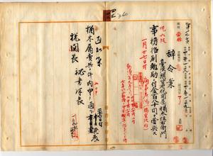 四三 台湾総督府税関長岩政憲三ノ内申ニ依リ台北医院ニ入院シタル処病気危篤ニ陥リ死亡シタル基隆支署勤務台湾総督府税関属楢木恒右衛門ニ事務格別勉励ニ付キ一時金ヲ賞与ス