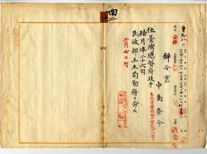二 台湾総督府民政部土木局長心得高橋辰次郎ノ内申ニ依リ元花蓮港庁技手中島泰介ヲ台湾総督府技手ニ任シ民政部土木局勤務ヲ命ス
