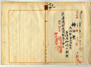 九 花蓮港郵便局長大津延吉ノ内申ニ依リ台湾総督府民政部通信局勤務台湾総督府通信属山川二郎助ニ花蓮港郵便局勤務ヲ命ス