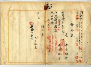 一六 花蓮港庁長中田直温及ヒ台湾総督府民政部財務局長中川友次郎ノ内申ニ依リ民政部財務局雇青木雄彦ヲ御用済ニ付キ雇ヲ免シ花蓮港庁属ニ任ス