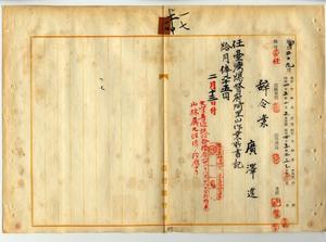 一七 阿里山作業所長事務取扱新元鹿之助ノ内申ニ依リ元林務属東京大林区勤務広沢進ヲ台湾総督府阿里山作業所書記ニ任ス