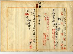 二〇 台中庁長枝徳二ノ内申ニ依リ台中庁属岡田亥八郎ニ林野調査ノ測量ニ従事ノ為メ台中庁技手ヲ兼任ス