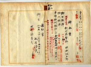 二二 新竹庁長家永泰吉郎ノ稟申ニ依リ新竹庁警部田中松五郎ハ新竹隘勇線部隊長トシテ前進中敵蕃ト衝突負傷シ危篤ニ陥リタル為メ二級昇級シ金四五〇円ヲ特別賞与ス