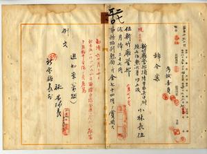 二七 新竹庁長家永泰吉郎ノ内申ニ依リ新竹庁警部補陸軍歩兵中尉小林長伍ヲ新竹庁ロウスゴウ山方面隘勇線前進ニ参加シ交戦中重傷ヲ負ヒ危篤ニ付キ新竹庁警部ニ任シ事務格別勉励ニ付キ金七四円ヲ賞与ス