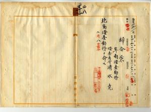 二八 台湾総督府民政部通信局長心得角源泉ノ内申ニ依リ卑南灯台勤務灯台看守清水堯ニ北島灯台勤務ヲ命ス